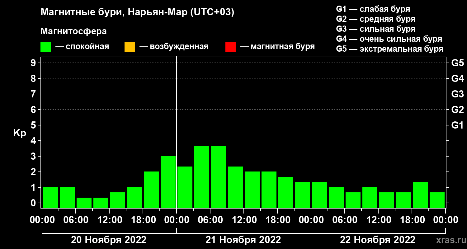Магнитные бури в Нарьян-Маре 22 ноября 2022 года