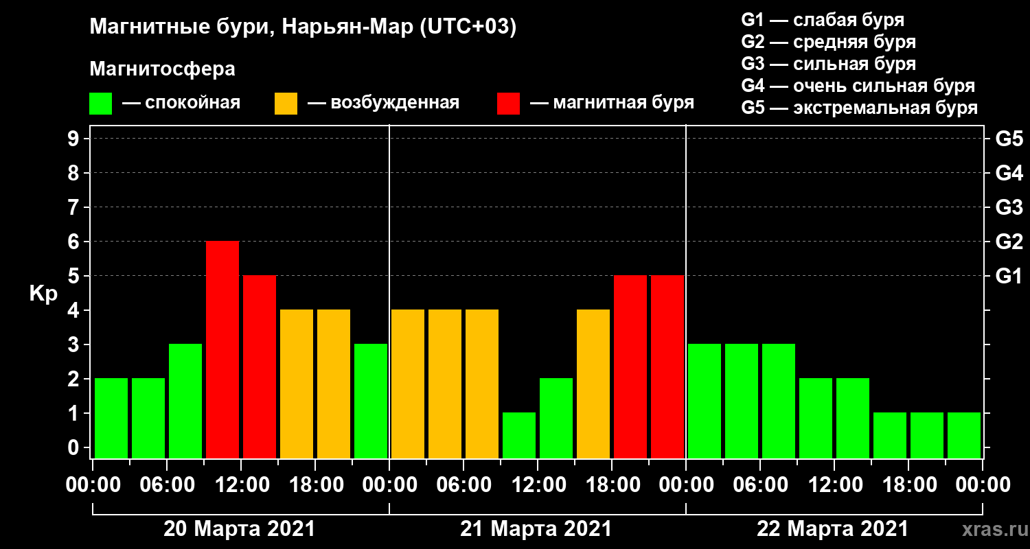 Магнитные бури в Нарьян-Маре 22 марта 2021 года