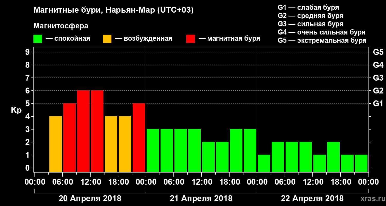 Магнитные бури в Нарьян-Маре 22 апреля 2018 года