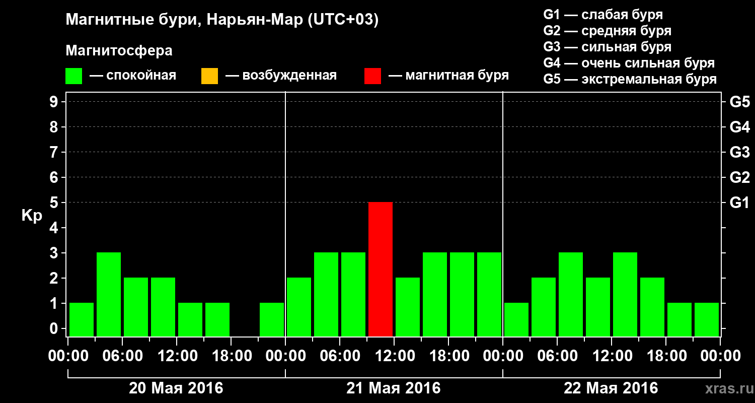 Магнитные бури в Нарьян-Маре — 22 мая 2016 года