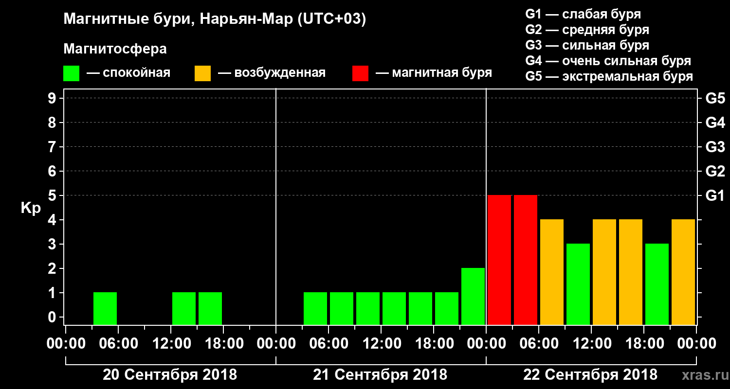 Магнитные бури в Нарьян-Маре 22 сентября 2018 года