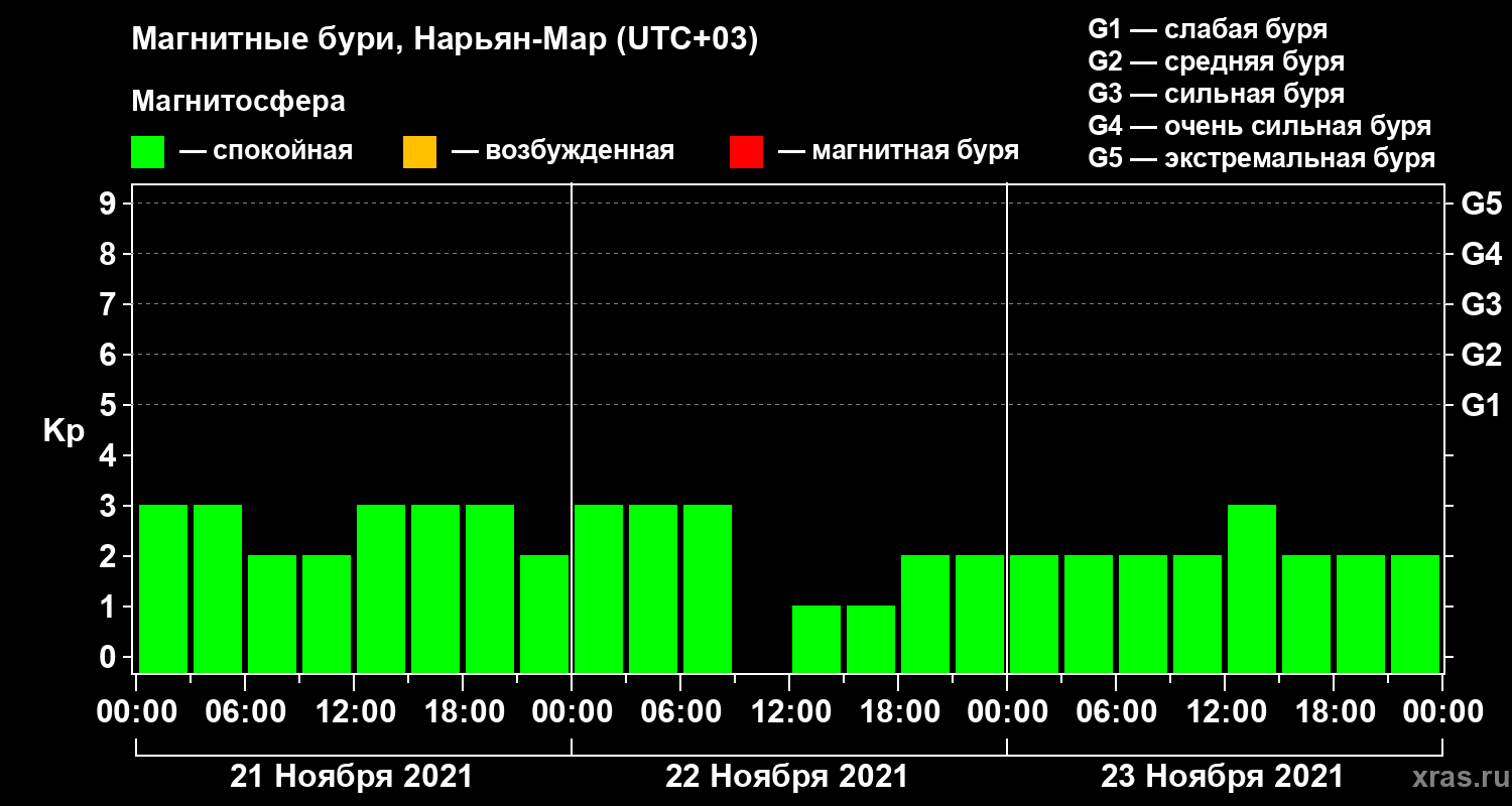 Магнитные бури в Нарьян-Маре 23 ноября 2021 года