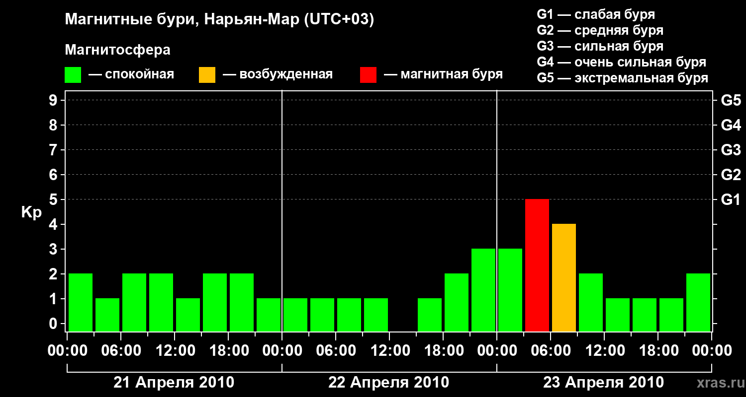 Магнитные бури в Нарьян-Маре 23 апреля 2010 года