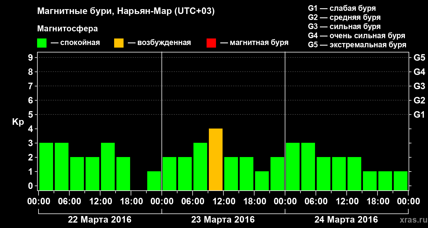 Магнитные бури в Нарьян-Маре 24 марта 2016 года