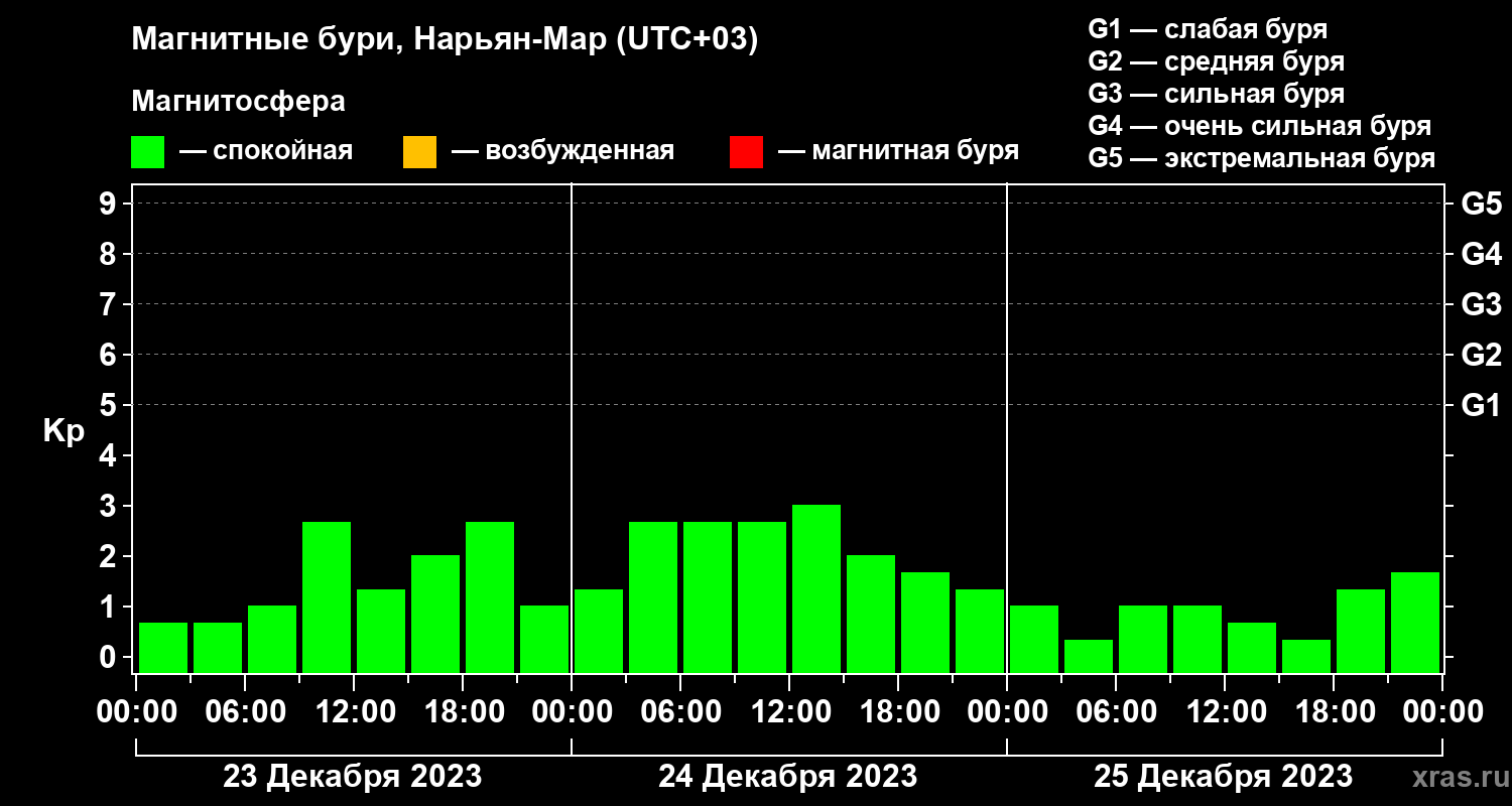 Магнитные бури в Нарьян-Маре 25 декабря 2023 года