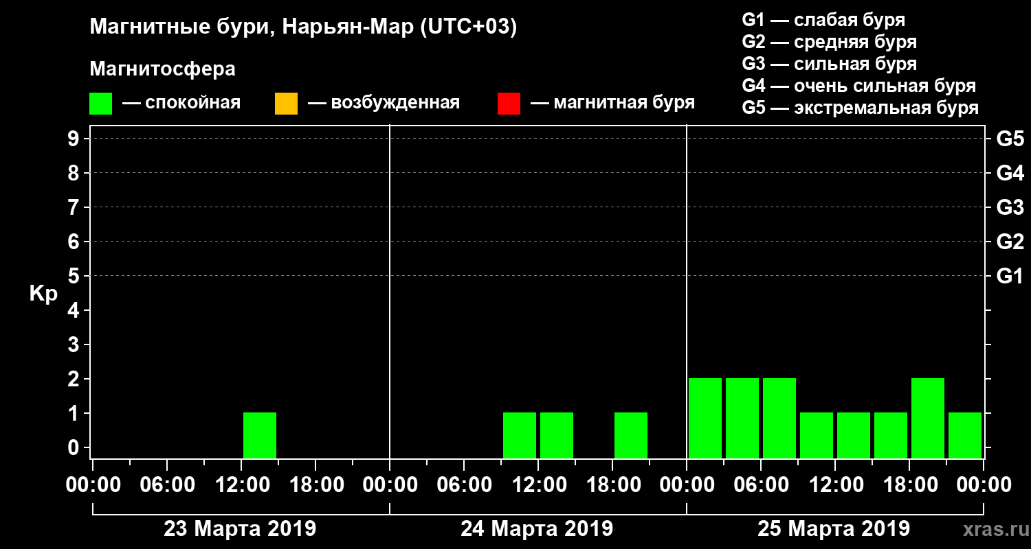 Магнитные бури в Нарьян-Маре 25 марта 2019 года