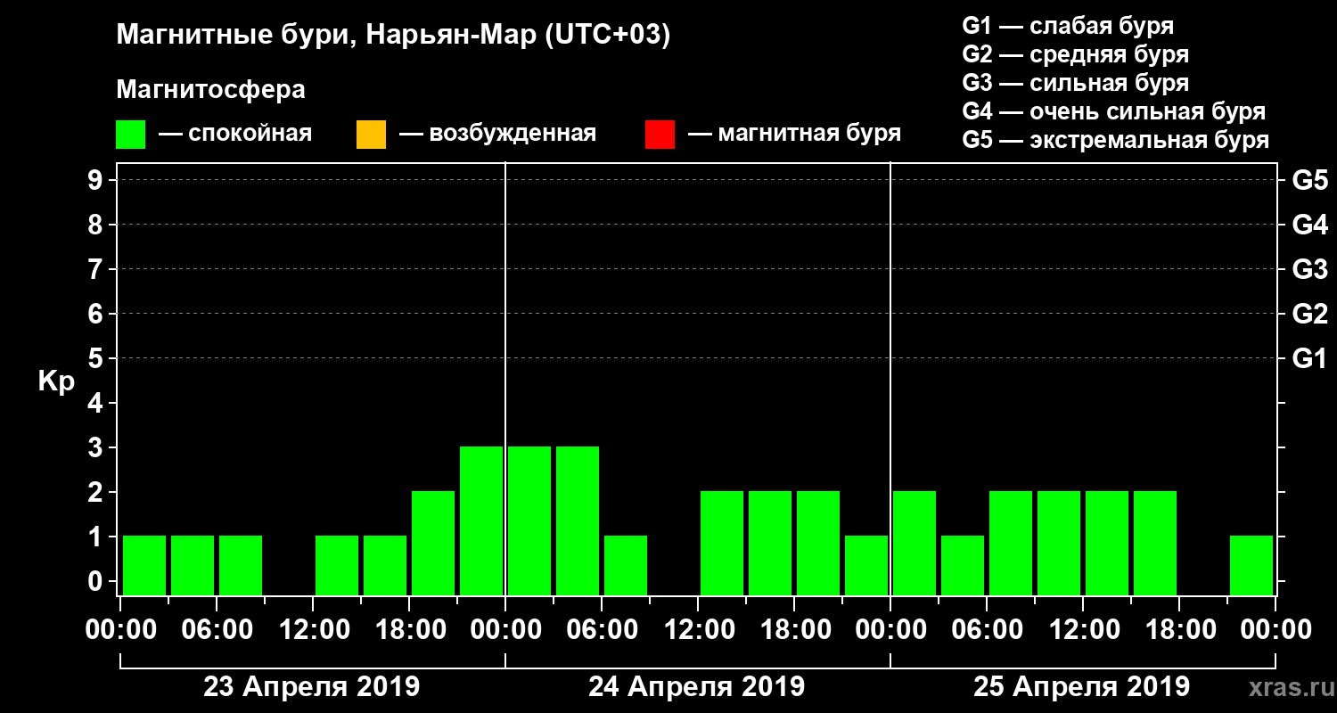 Магнитные бури в Нарьян-Маре 25 апреля 2019 года