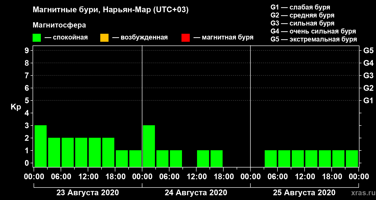 Магнитные бури в Нарьян-Маре 25 августа 2020 года