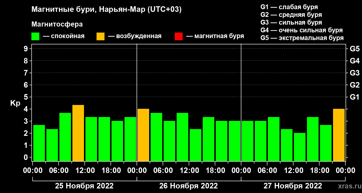 Магнитные бури в Нарьян-Маре — 27 ноября 2022 года