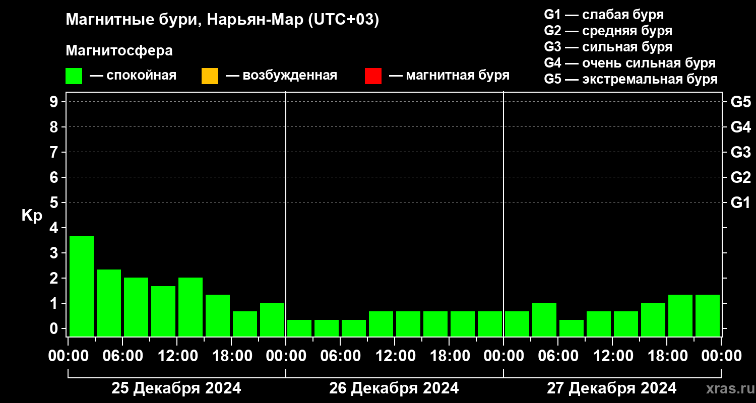 Магнитные бури в Нарьян-Маре — 27 декабря 2024 года