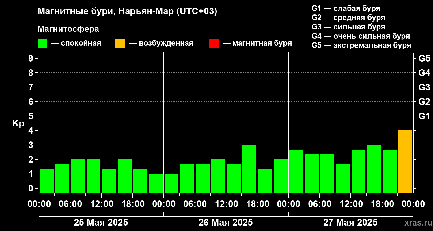 Магнитные бури в Нарьян-Маре — 27 мая 2025 года