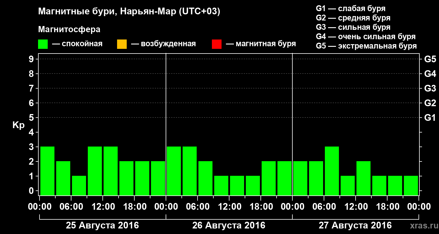 Магнитные бури в Нарьян-Маре 27 августа 2016 года