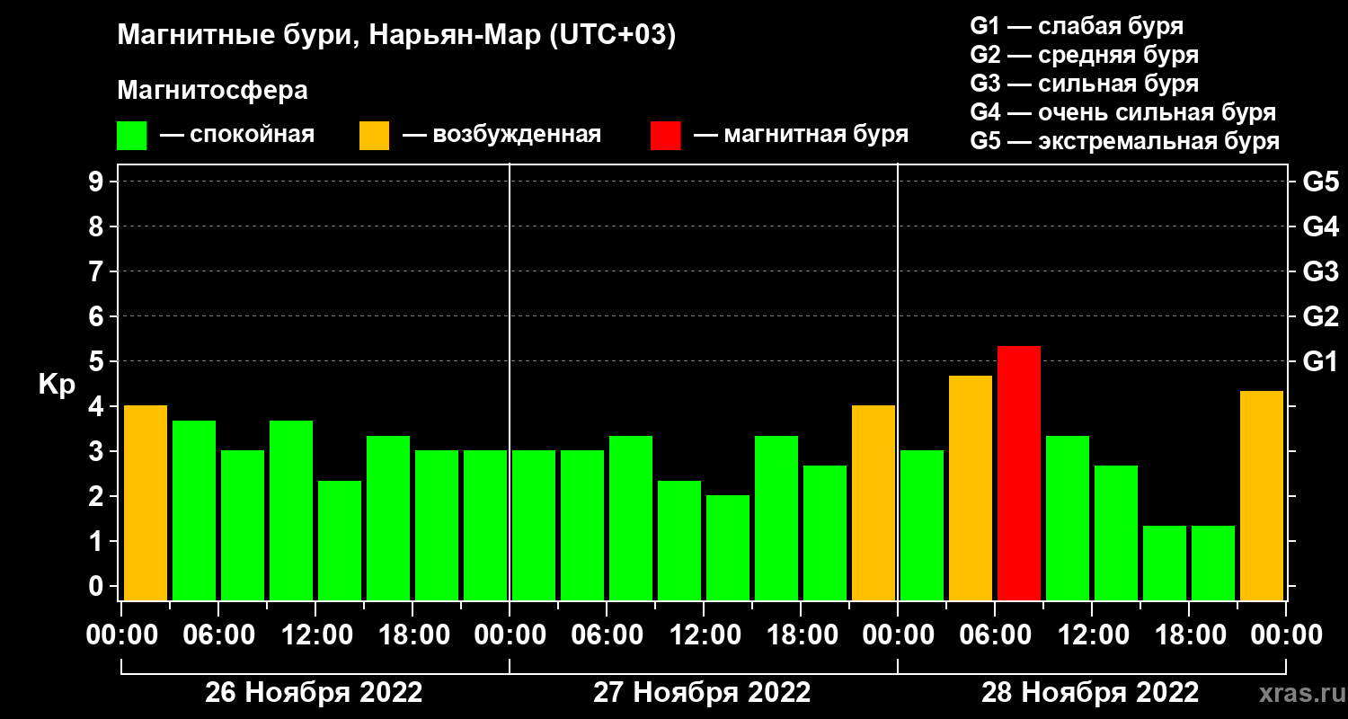 Магнитные бури в Нарьян-Маре — 28 ноября 2022 года