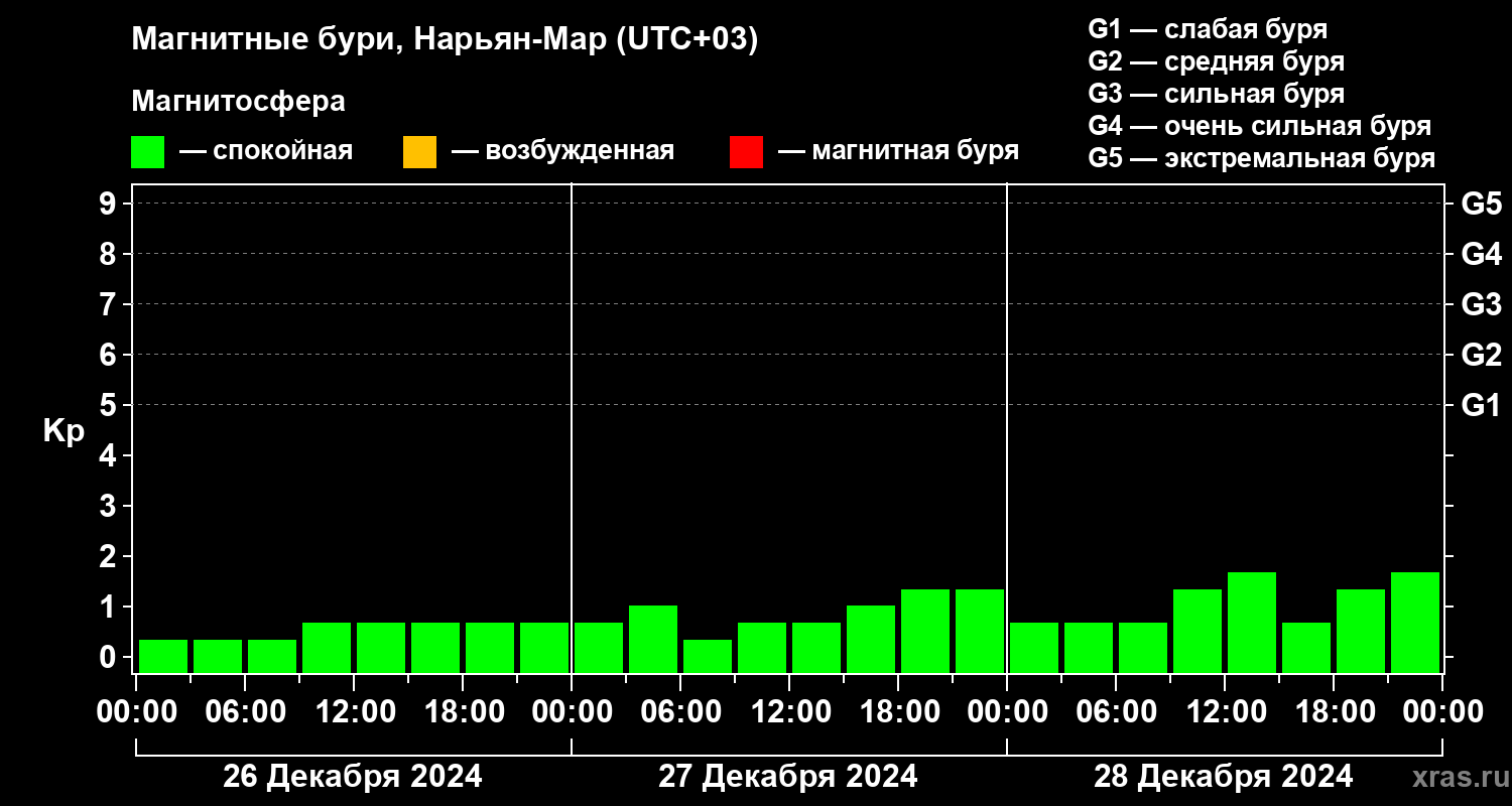 Магнитные бури в Нарьян-Маре — 28 декабря 2024 года