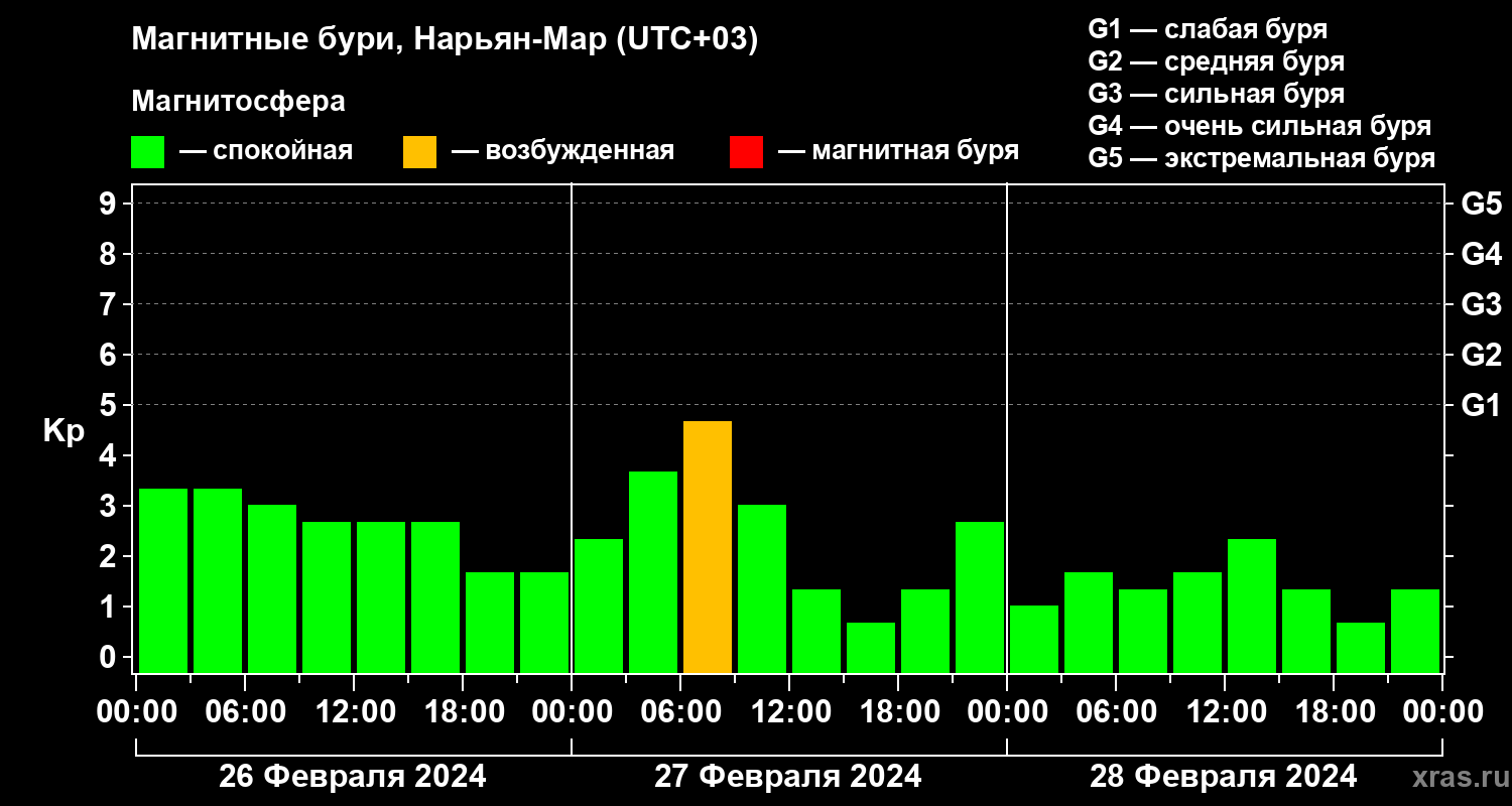 Магнитные бури в Нарьян-Маре — 28 февраля 2024 года