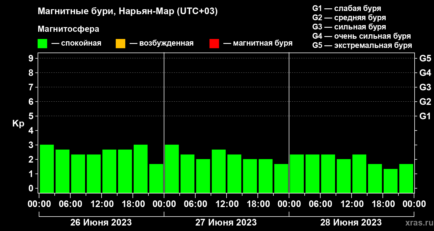 Магнитные бури в Нарьян-Маре 28 июня 2023 года