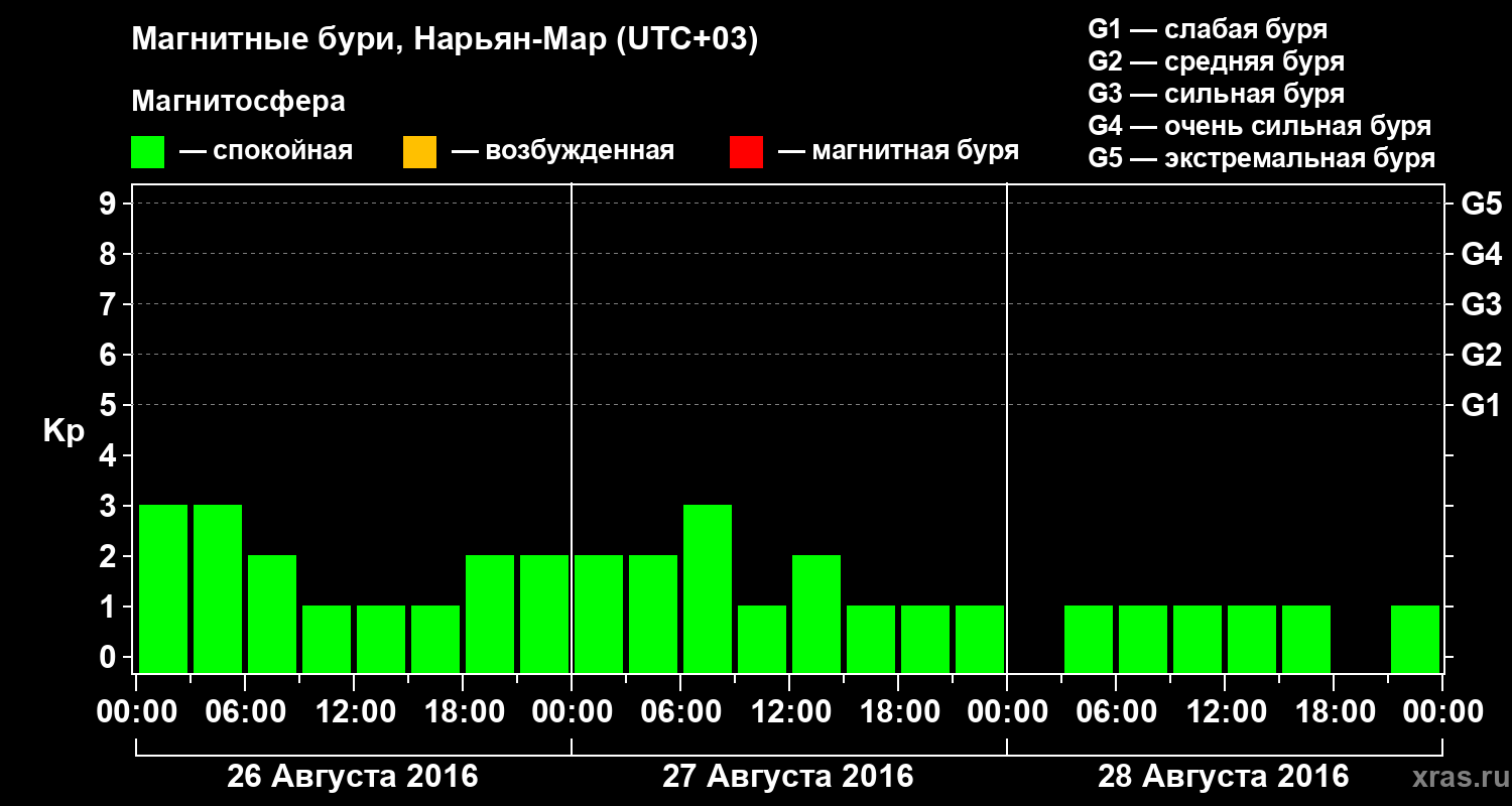 Магнитные бури в Нарьян-Маре 28 августа 2016 года