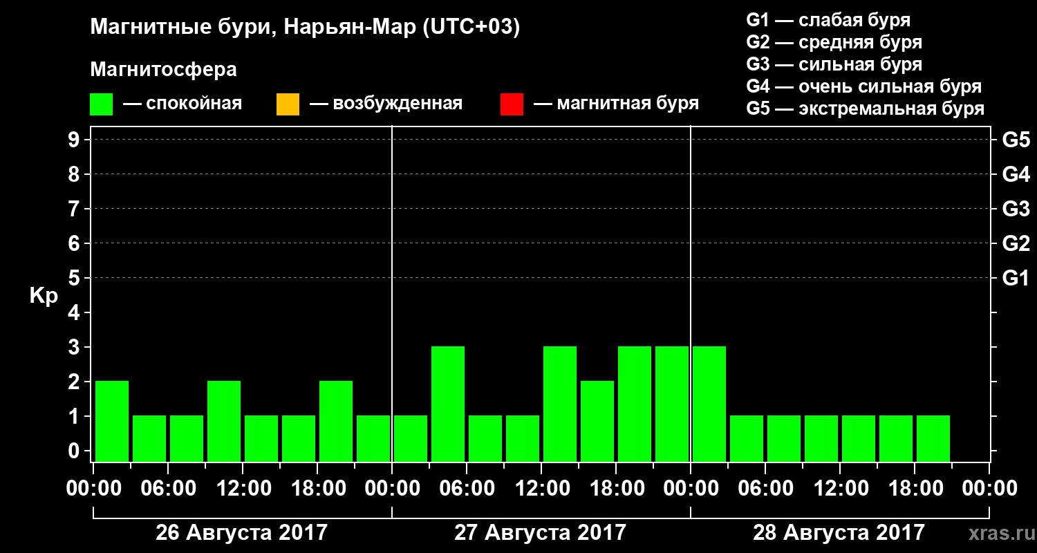 Магнитные бури в Нарьян-Маре 28 августа 2017 года