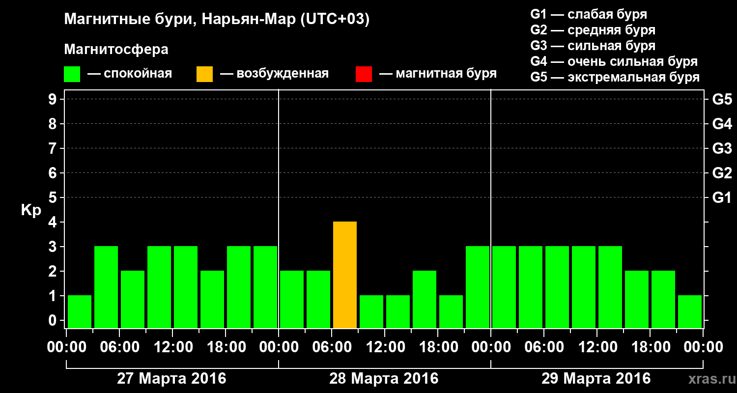 Магнитные бури в Нарьян-Маре 29 марта 2016 года