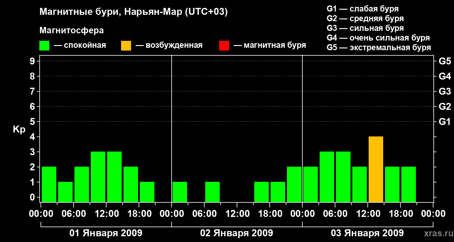 Магнитные бури в Нарьян-Маре 3 января 2009 года
