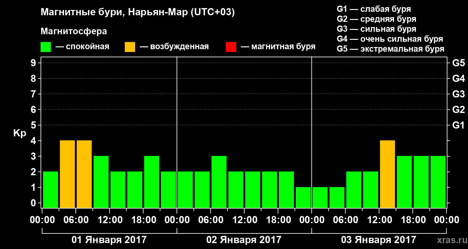 Магнитные бури в Нарьян-Маре 3 января 2017 года