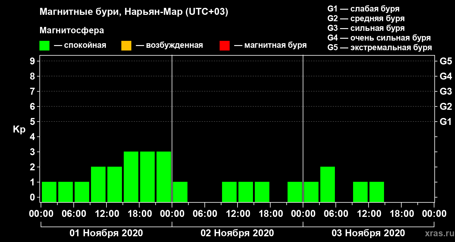 Магнитные бури в Нарьян-Маре 3 ноября 2020 года
