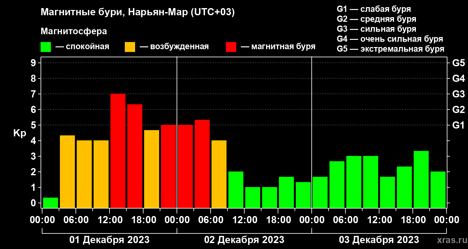 Магнитные бури в Нарьян-Маре — 3 декабря 2023 года