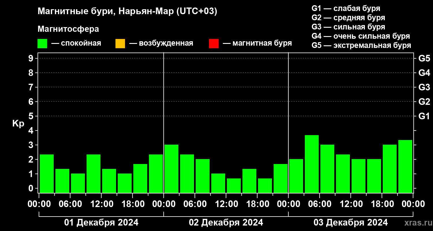 Магнитные бури в Нарьян-Маре — 3 декабря 2024 года