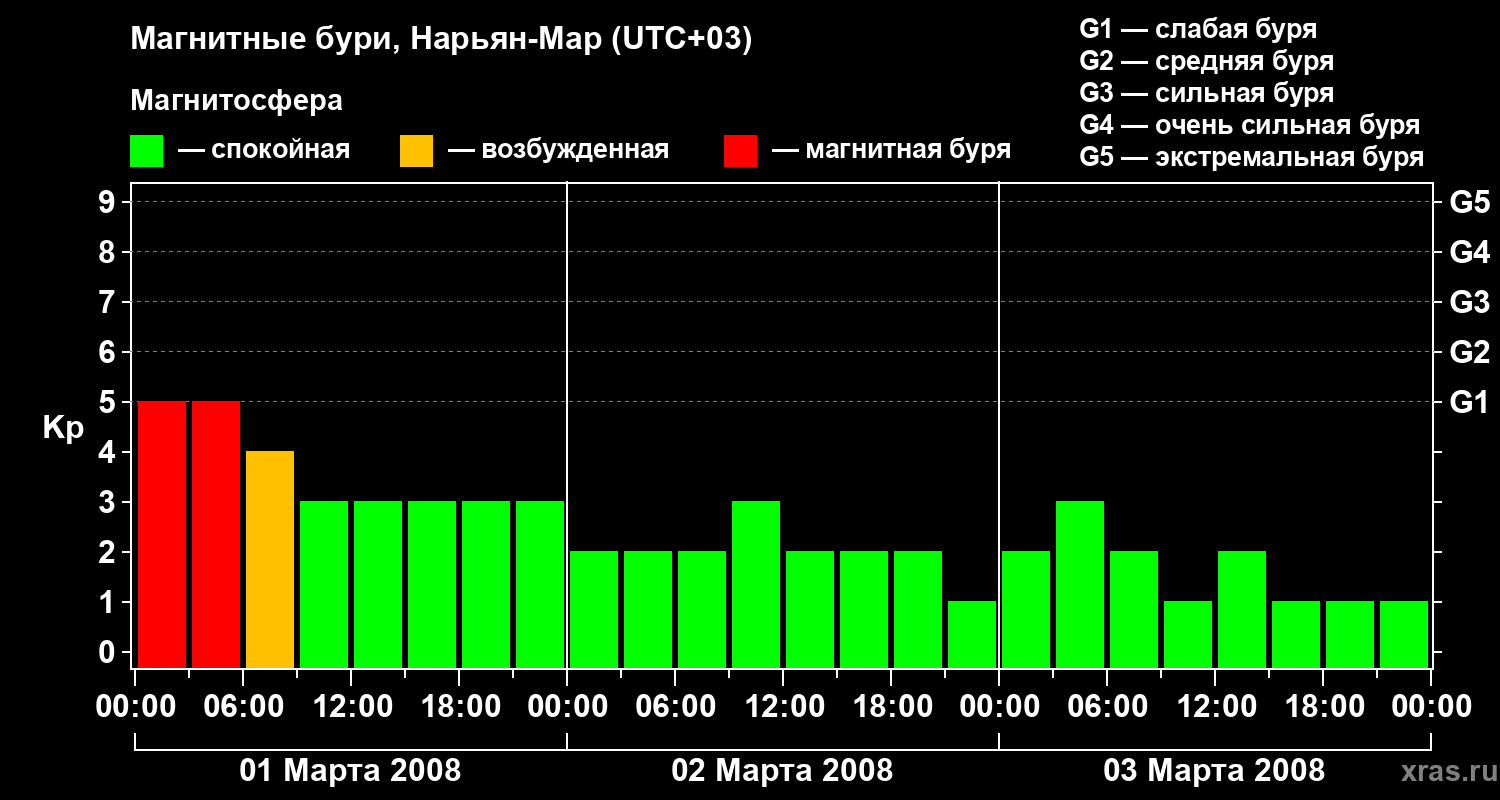Магнитные бури в Нарьян-Маре 3 марта 2008 года