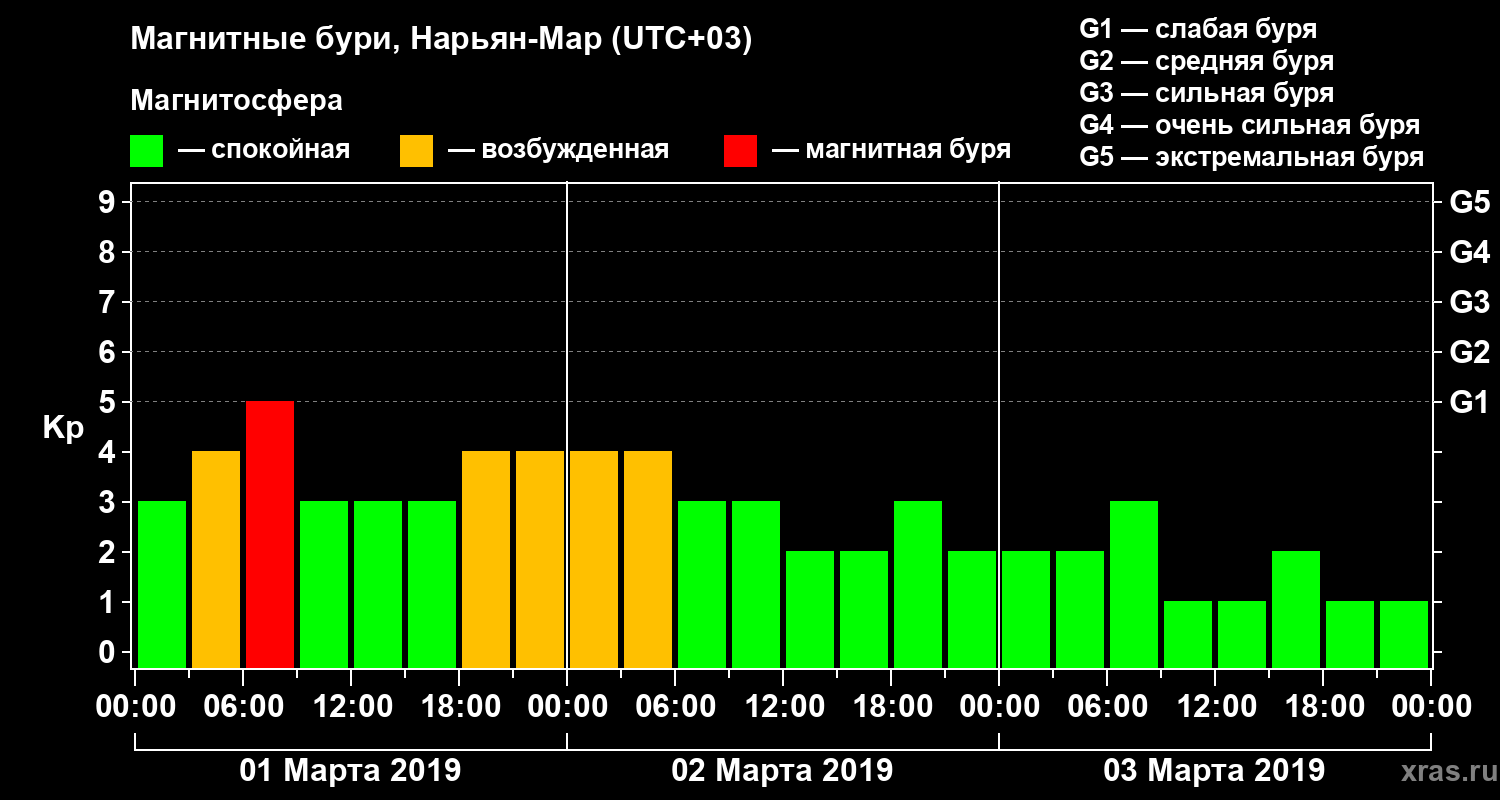 Магнитные бури в Нарьян-Маре 3 марта 2019 года