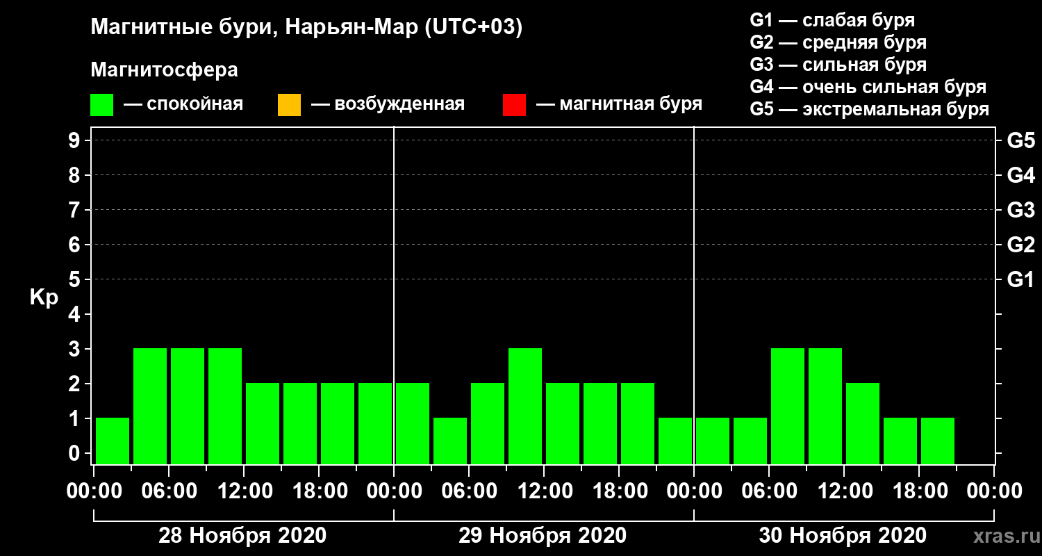 Магнитные бури в Нарьян-Маре 30 ноября 2020 года