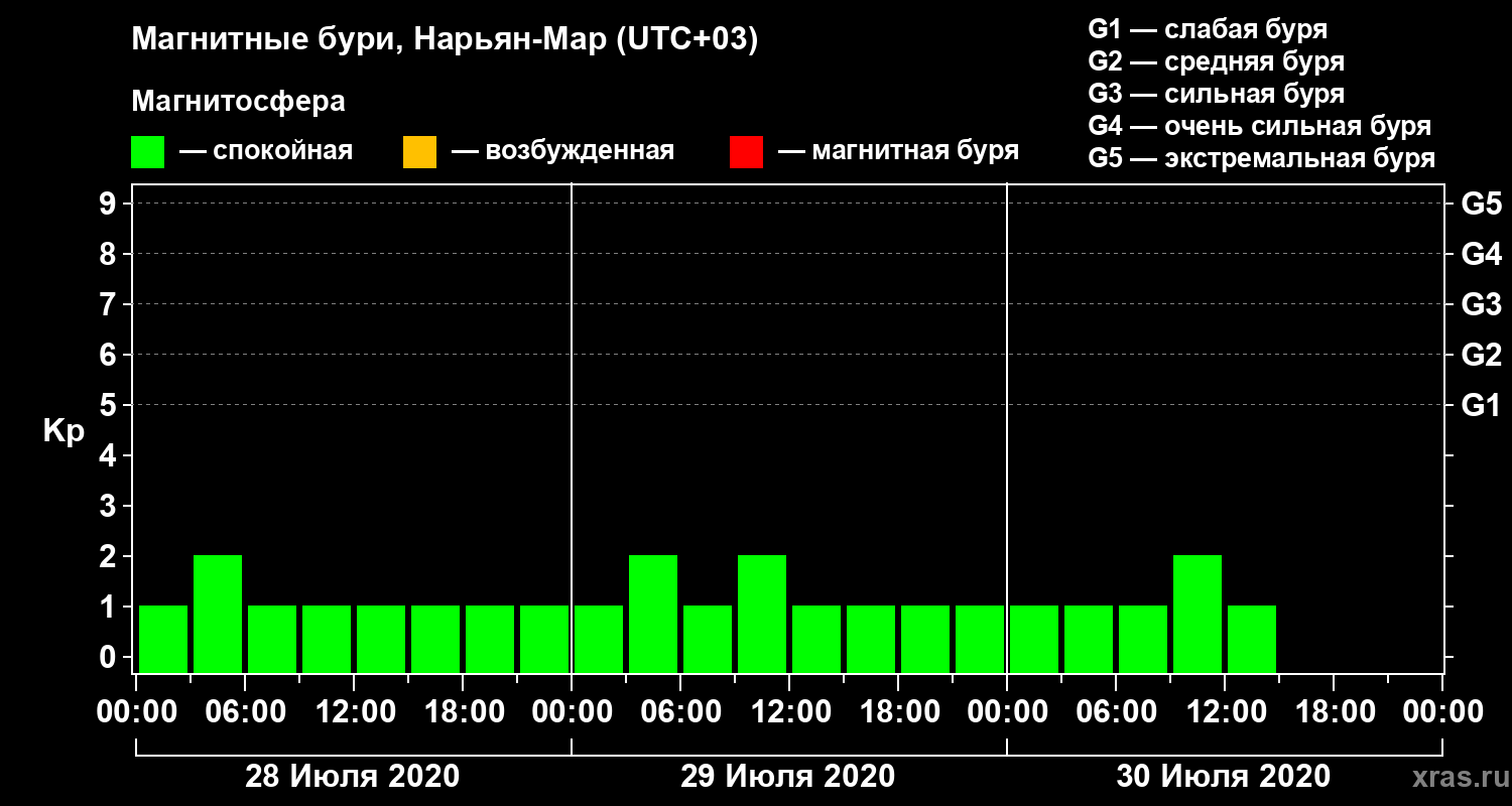 Магнитные бури в Нарьян-Маре 30 июля 2020 года