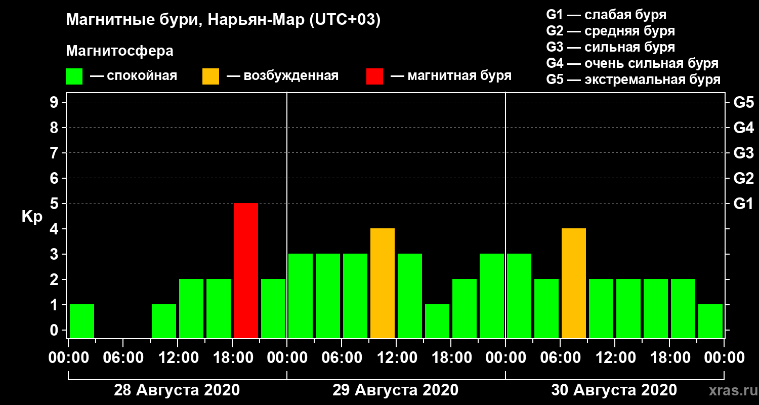 Магнитные бури в Нарьян-Маре 30 августа 2020 года
