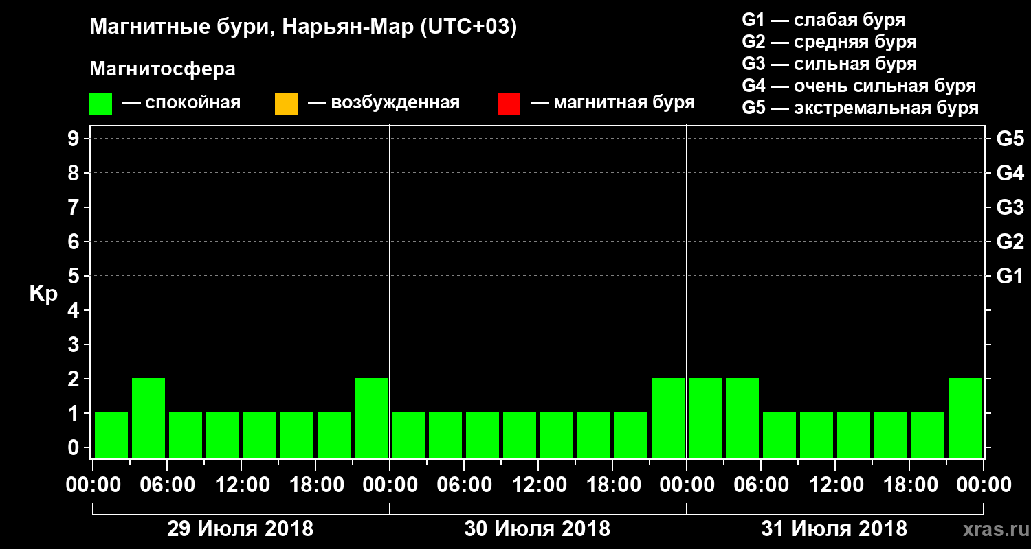 Магнитные бури в Нарьян-Маре 31 июля 2018 года