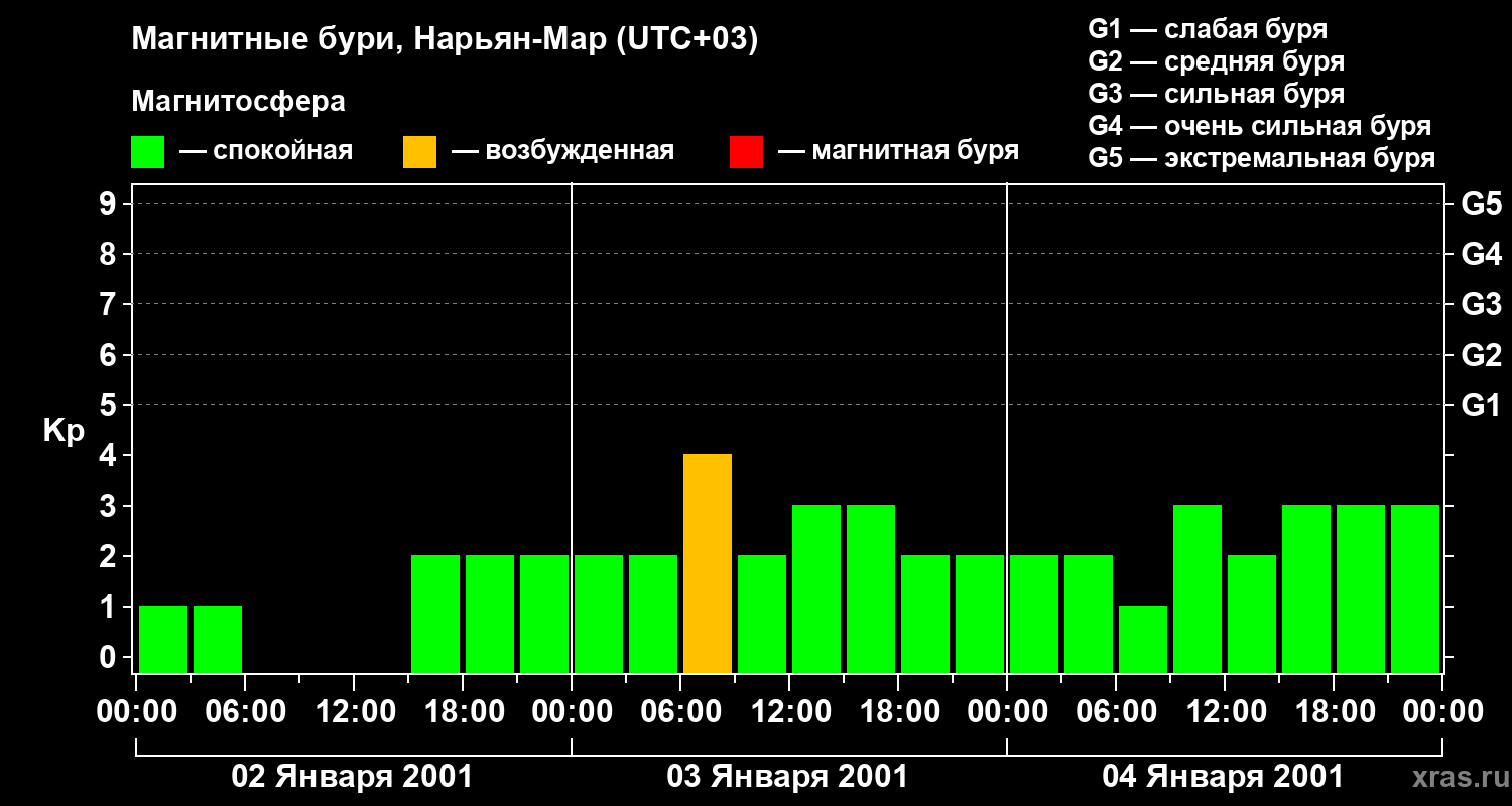 Магнитные бури в Нарьян-Маре 4 января 2001 года