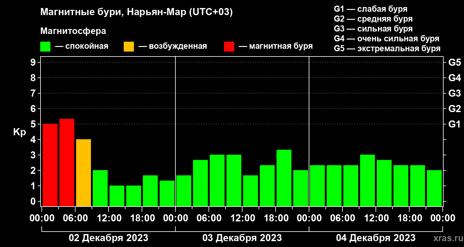 Магнитные бури в Нарьян-Маре — 4 декабря 2023 года
