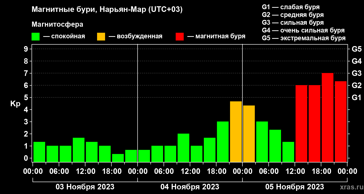 Магнитные бури в Нарьян-Маре — 5 ноября 2023 года