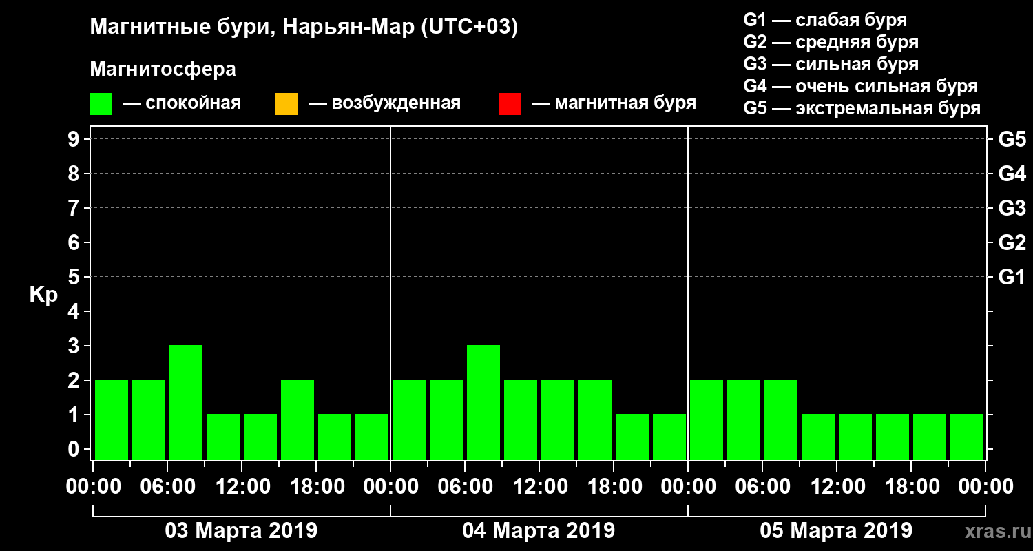 Магнитные бури в Нарьян-Маре 5 марта 2019 года
