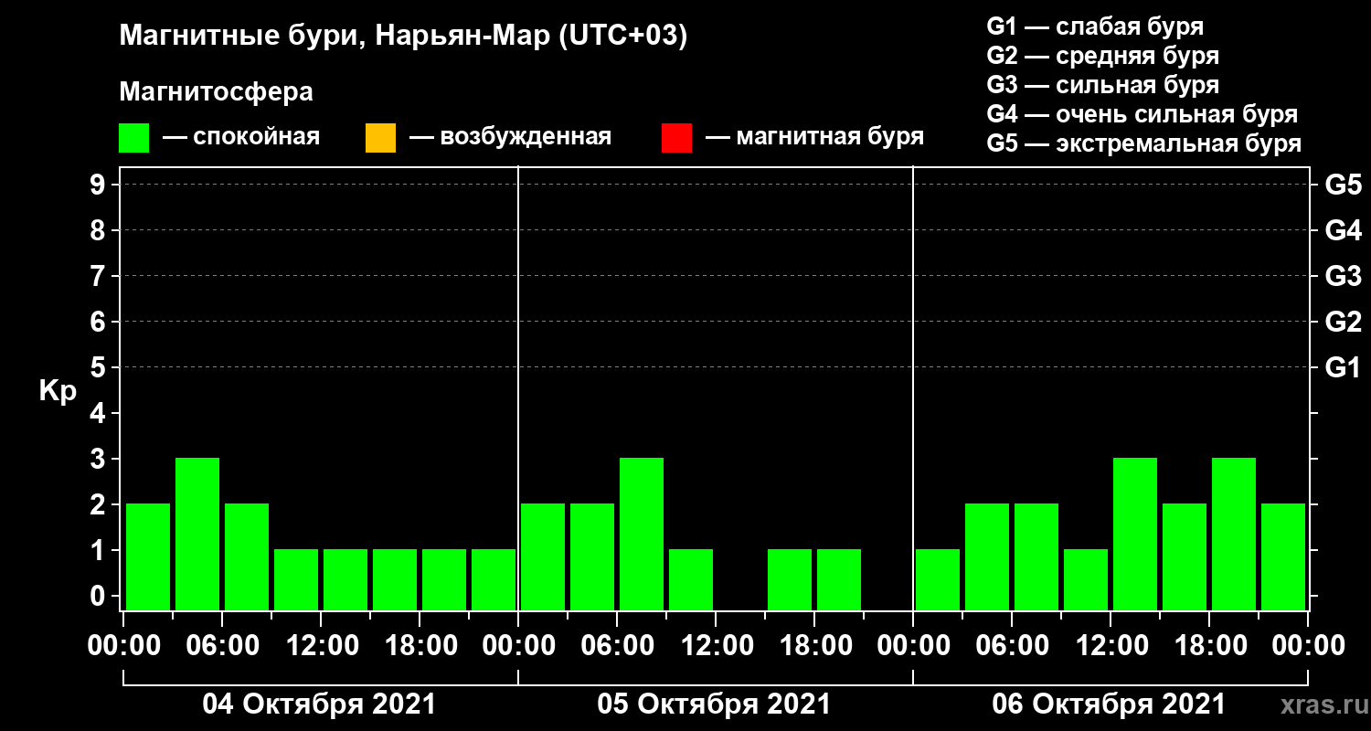Магнитные бури в Нарьян-Маре — 6 октября 2021 года
