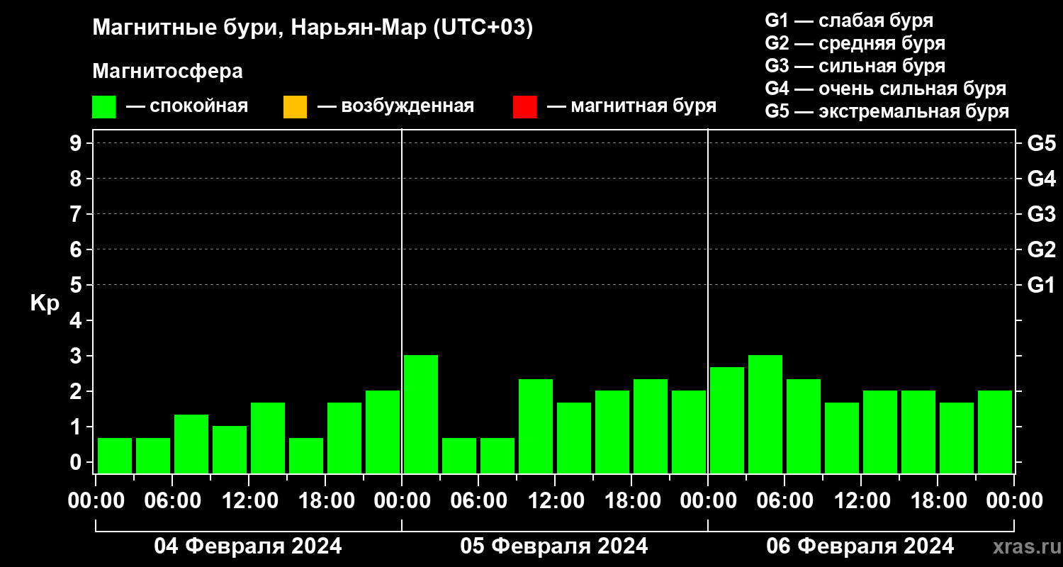 Магнитные бури в Нарьян-Маре 6 февраля 2024 года