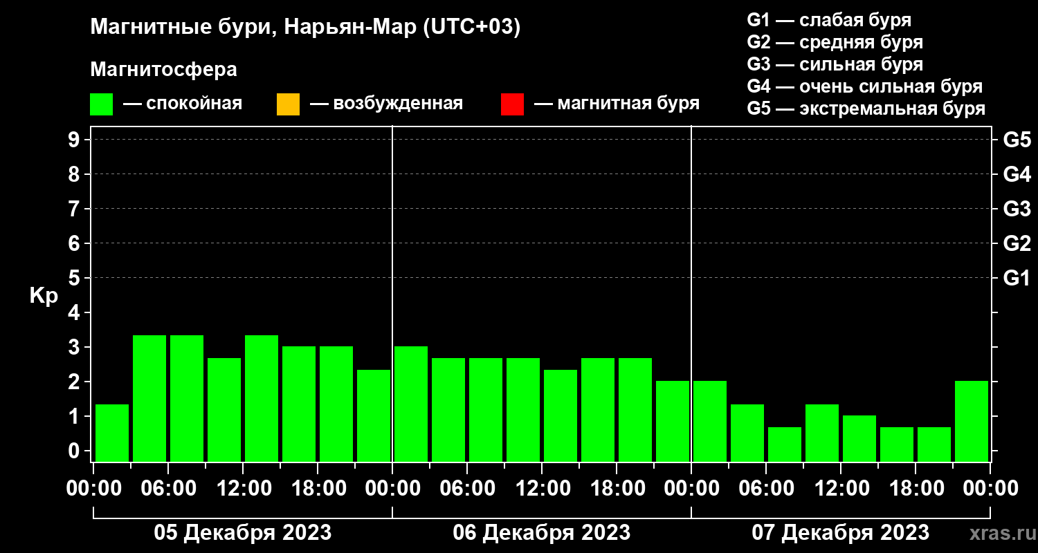 Магнитные бури в Нарьян-Маре 7 декабря 2023 года