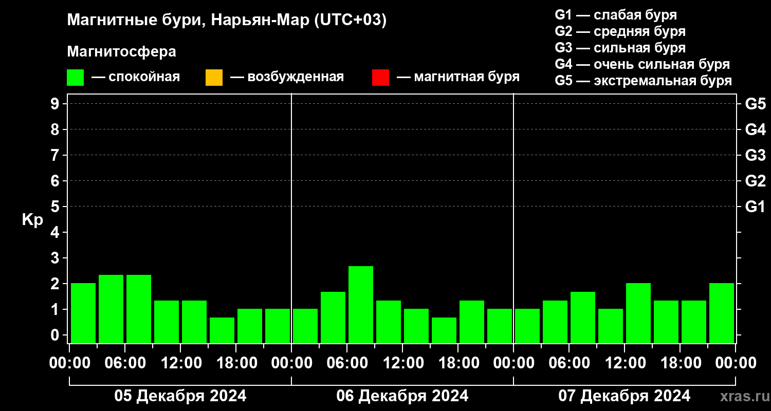 Магнитные бури в Нарьян-Маре — 7 декабря 2024 года