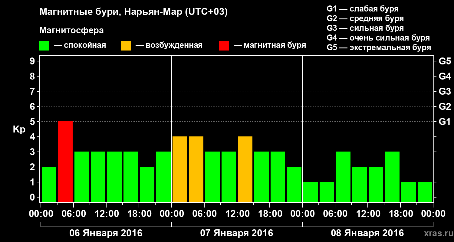 Магнитные бури в Нарьян-Маре 8 января 2016 года