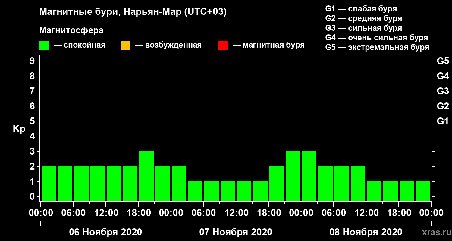 Магнитные бури в Нарьян-Маре 8 ноября 2020 года