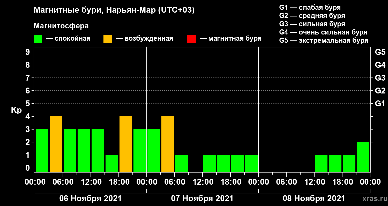 Магнитные бури в Нарьян-Маре — 8 ноября 2021 года