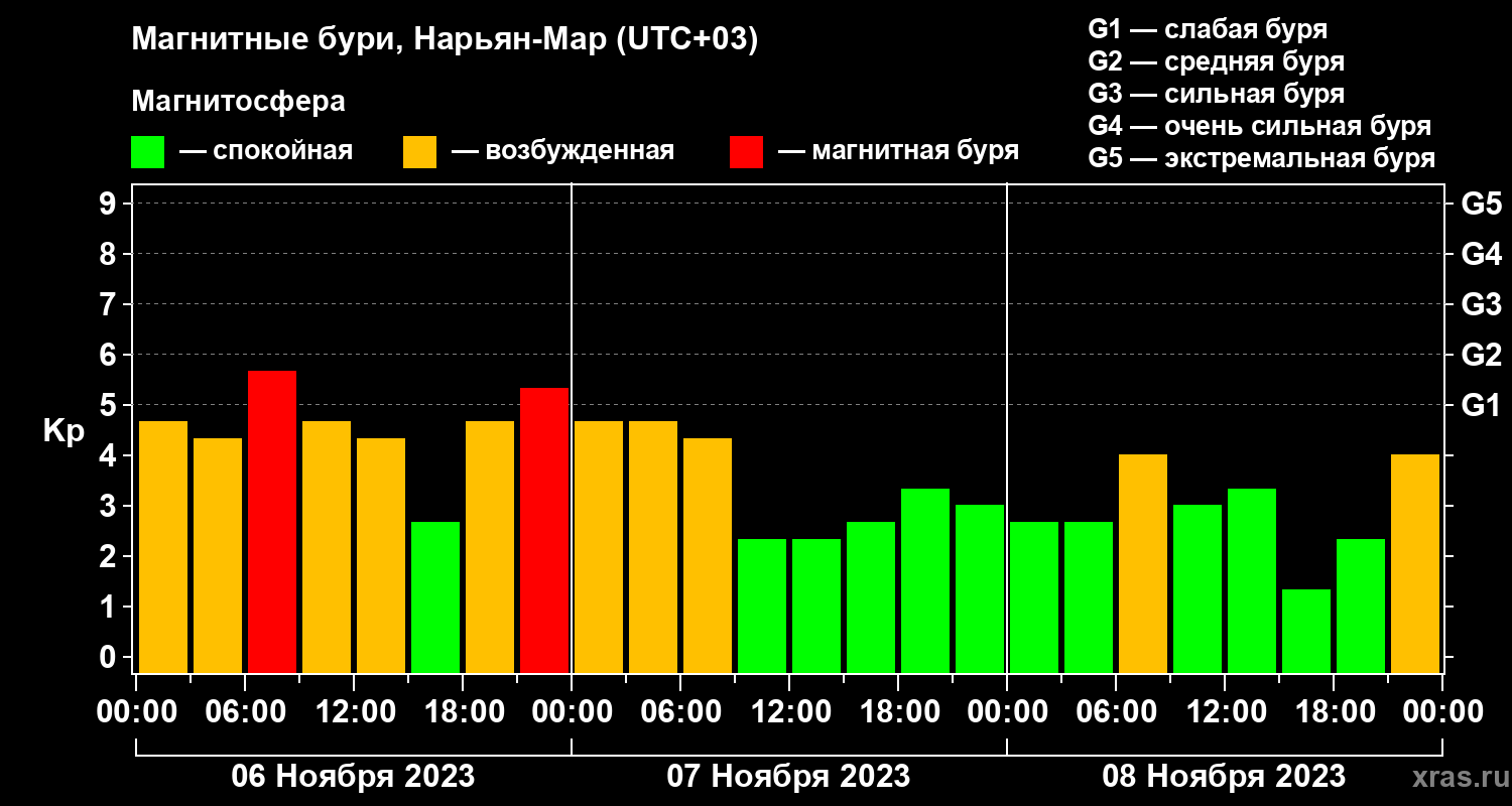 Магнитные бури в Нарьян-Маре — 8 ноября 2023 года