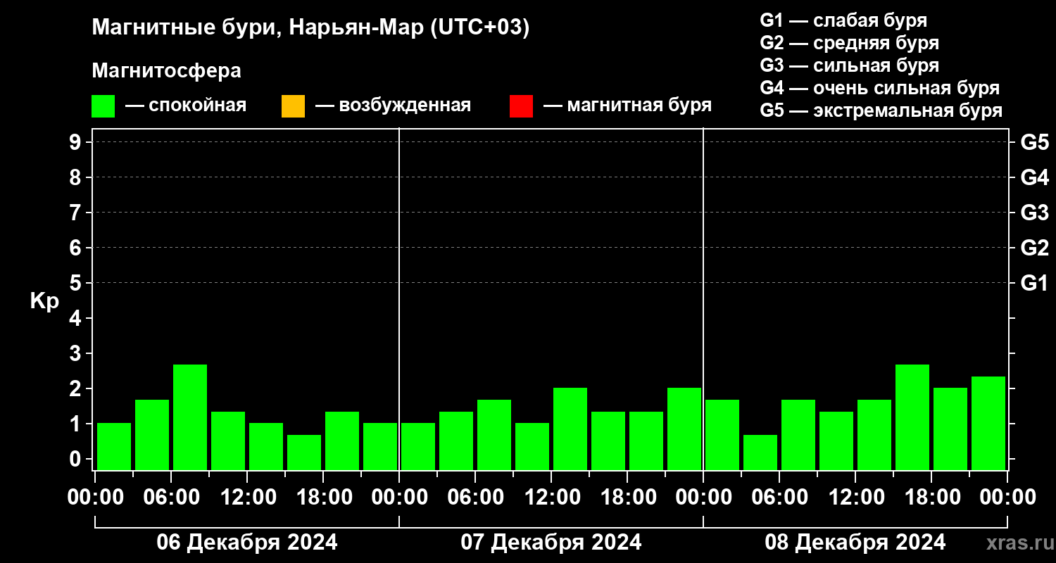 Магнитные бури в Нарьян-Маре — 8 декабря 2024 года