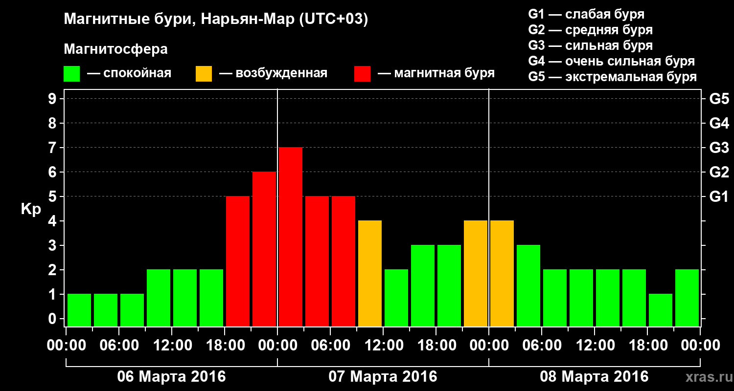 Магнитные бури в Нарьян-Маре — 8 марта 2016 года