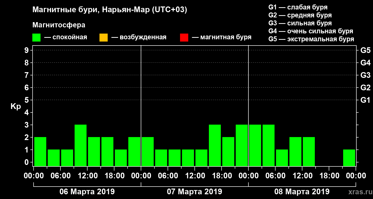 Магнитные бури в Нарьян-Маре — 8 марта 2019 года