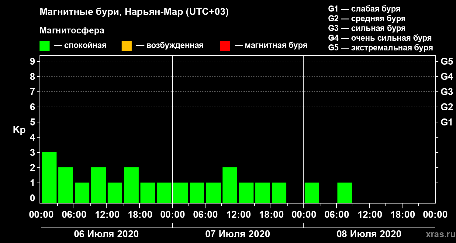 Магнитные бури в Нарьян-Маре — 8 июля 2020 года